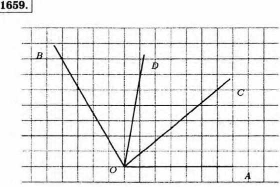 1660. Острые углы: ∠А = 67°, ∠D = 3°. Тупые углы: ∠В = 175°, ∠С = 92°. 1661. Острые углы: ∠BAC = 20°, ∠CAD = 70°, ∠РКМ = 20°, ∠PKN = 38°, ∠MKN = 58°, ∠ХОЕ = 55°. Прямой угол: ∠BAD = 90°. Тупой угол: ∠EOV = 25°. Развернутый угол ∠XOV = 180°.