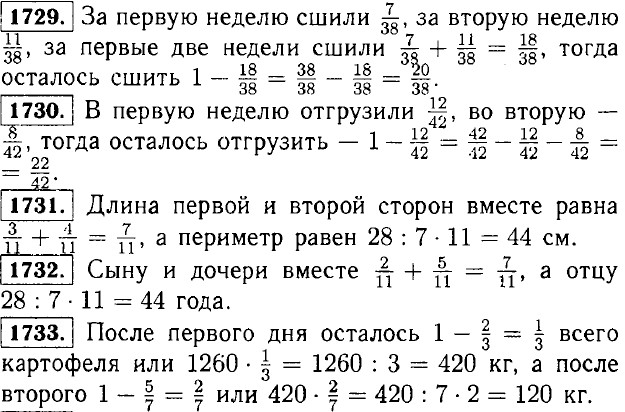 1721. а) 27450 = 89 • 308 + 38; б) 30394 = 307 • 99 + 1. 1722. Так как 5 < 7, то в остатке также будет 5, а неполное частное будет равно 12. 1723. а) 85 + 203x + 102x + 9 = 305x + 176; при х = 76305 • 76 + 176 = 23356; при х = 201305 • 201 + 176 = 61481; б) 79у - (23у - 15у) = 79у - 23у + 15у = 71y; при у = 1571 • 15 = 1065; при у = 30971 • 309 = 21939. 1724. Правильной называется дробь у которой числитель меньше знаменателя. Неправильной называется дробь у которой числитель больше или равен знаменателю.