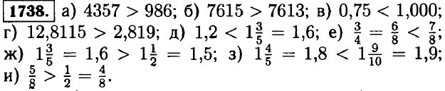 1734. Выполните упражнение самостоятельно. 1735. а) 67(3,2), б) 67(2,8), в) 67(3) г) 67(2,99), д) C(0,85). 1736. а) А правее В; б) А и В одна и та же точка; в) A левее В. 1737. а) пятизначное всегда больше четырехзначного; б) то число, которое начинается на 7 всегда больше того, что начинается на 5; в) натуральное число всегда больше, чем 0; г) из двух обыкновенных дробей с одинаковыми знаменателями больше то, у которого больше числитель; д) из двух десятичных дробей с разными целыми частями больше то, у которой больше целая часть; е) из двух десятичных дробей с одинаковыми целыми частями больше та, у которой больше дробная часть.