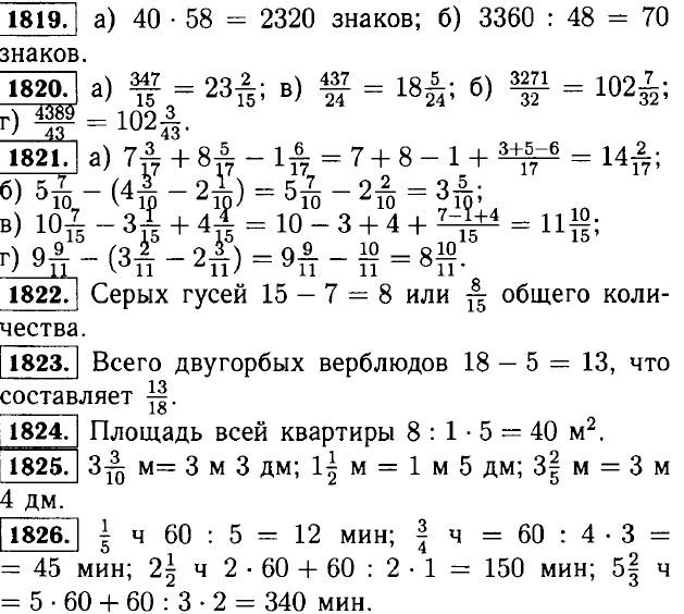 1816. а) (369 + 471) : (872 - 842) = 840 : 30 = 28; б) (38 • 48) : (39 + 57) = 1824 : 96 = 19. 1817. а) 13х + 12х + 15 = 240 ⇒ 25х = 225 ⇒ х = 225 : 25 = 9; б) (14х - 2х) : 17 = 312 ⇒ 12х = 312 • 17 = 5304 ⇒ х = 5304 : 12 = 442. 1818. Да, верно: 398 + 24 • 87 = 398 + 2088 = 2486 < 3100. 1819. a) 40 • 58 = 2320 знаков; б) 3360 : 48 = 70 знаков.