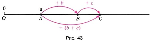 б) Объясните по рисунку 43 смысл сочетательного свойства сложения.