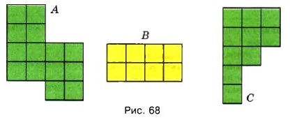 § 4. Площади и объёмы 18. Площадь. Формула площади прямоугольника (продолжение)712. Найдите равные фигуры на рисунке 67. Сколько клеточек содержит каждая фигура на этом рисунке? 713. Треугольники АВС и DEP равны. Чему равен периметр треугольника DEP, если АВ = 3 см, ВС = 4 см, СА = 5 см? 714. Какие из отрезков АВ, МР, CD, OK, EF равны, если АВ = 3 см, МР = 5 см, CD = 30 мм, ОК = 50 мм, EF = 84 см? 715. Найдите площадь каждой фигуры, изображённой на рисунке 68, если условиться, что длина стороны каждой клетки равна 1 см.