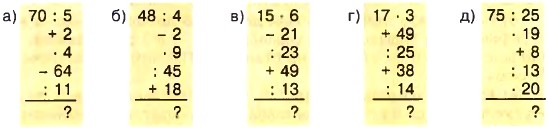725. Вычислите: 3!; 6!; 7!. 726. Составьте условие задачи по уравнению: а) 14t = 70; б) 5 727. Можно ли указать число, которое не является корнем уравнения: а) х : х = 1; б) 0 : х = 0; в) m : 0 = 0; г) 728. Как изменится произведение двух чисел, если второе число увеличить: на 1? на 2? в 2 раза? Приведите примеры. 729. Какой получится результат, если: а) наименьшее четырёхзначное число умножить на 100;