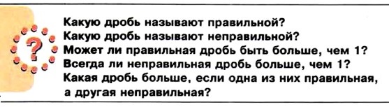Правильная дробь меньше единицы, а неправильная дробь больше или равна единице (рис. 124). Например,