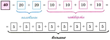 1062. Представьте числа 64, 144, 1000 в виде суммы их половин, четвертей и восьмых по образцу: