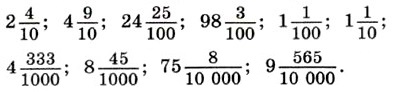 Числа со знаменателями 10, 100, 1000 и т. д. условились записывать без знаменателя.