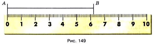 Если Длина отрезка АВ (см. рис. 149) ближе к 6 см, чем к 7 см. Она приближённо равна 6 см.