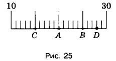 110. На рисунке 25 изображена шкала. Какие числа соответствуют точкам А, В, С и D этой шкалы? 111. Начертите в тетради отрезок, длина которого равна длине 24 клеток. Над одним концом отрезка напишите число 0, а над другим — число 12. Разделите отрезок штрихами на 12 равных частей и расставьте на полученной шкале числа 6; 7; 10; 11.