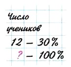 Р е ш е н и е. Сначала узнаем, чему равен 1 % всех учеников. Для этого разделим 12 на 30.