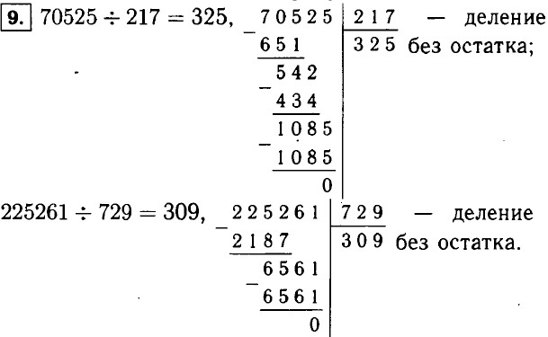2. а) Да, можно так как 42 : 6 = 7. Для этого нужно взять 7 коробок, б) Нет, нельзя. 49 не делится на 6 без остатка 49 : б = 8 • б + 1. Для этого надо взять 8 коробок и ещё одну ложку из вскрытой коробки. 3. а) 45 : 5 = 9 — верно; б) неверно; в) неверно; г) 27 : 3 = 9 — верно; д) неверно; е) 156 : 13 = 12 — верно. 4. 105 : 15 = 7 — да является; 105 : 7 = 15 — да является. 5. а) 4 и 10; б) 4, 8, 12, 16 — кратные числа 4; в) делители 16 и кратные 4, 8, 16; г) число 6 кратно числу 3 и является делителем числа 18. 6. а) 1, 2, 3, 6; б) 1, 2, 3, 6, 9, 18; в) 1, 5, 25; г) 1, 19. 7. а) 16, 24, 32, 40, 48, 56, 64, 72, 80, 88, 77, 88, 96, 99; б) 11, 22, 33, 44, 55, 66; в) 48, 96; г) 99. 8. Школьники могут построиться: по 90 : 2 = 45 школьников в две шеренги; по 90 : 5 = 18 школьников в 5 шеренг; 90 не делится на 11 без остатка; по 90 : б = 15 школьников в 5 ряду.