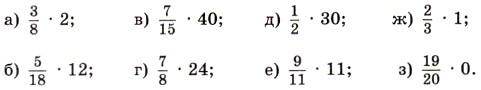 Например, Расскажите, как умножить дробь на натуральное число. Расскажите, как выполнить умножение двух дробей и как выполнить умножение смешанных чисел. Какими свойствами обладает действие умножения дробей? Запишите свойства нуля и единицы при умножении. 427. Выполните умножение: