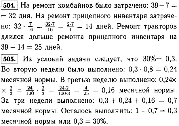 496. Капустой засажено: 0,04 • 0,8 = 0,032 га, а другими овощами: 0,04 - 0,032 = 0,008 га. 497. Из условий задачи следует, что 2% = 0,02. За год население увеличивается на: 750 • 0,02 = 150 тыс. человек. Через год население будет: 750 + 15 = 765 тыс. человек. За следующий год население увеличится на 765 • 0,02 = 15,3 тыс. человек и будет 765 + 15,3 = 780,3 тыс. человек. 498. Из условий задачи следует, что 120%= 1,2. Рабочий изготовил деталей: 45 • 1,2 = 54 штуки. 499. Из условий задачи следует, что 15%= 0,15; 12% = 0,12. За июнь уровень упал на: 60 • 0,15 = 9 м. К началу июля уровень составил: 60 + 9 = 51 м. За июль уровень упал на: 51 • 0,12 = 6,12 м. К началу августа уровень составил: 51 - 6,12 = 44,88 м.