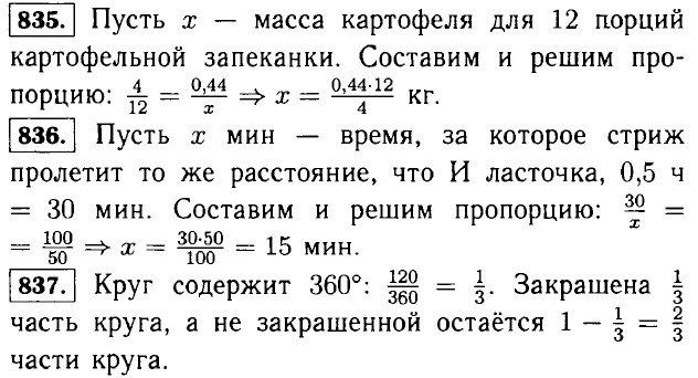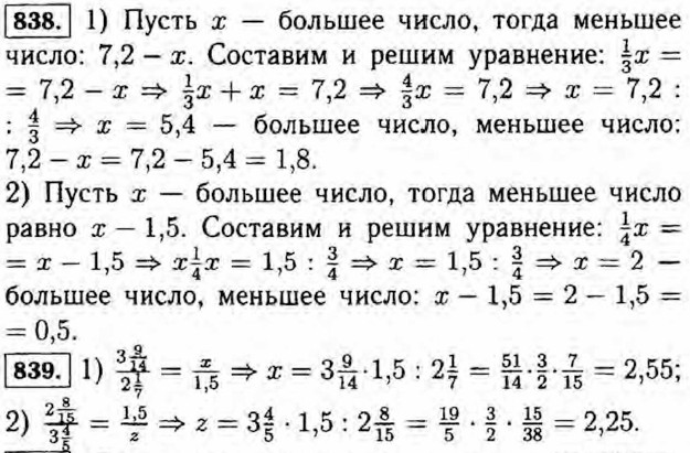 845. 2,4 : х = 1 : 3 ⇒ х = 2,4 • 3 ⇒ х = 7,2 см — длина детали, х : 7,2 = 2 : 1 ⇒ х = 7,2 • 2; x = 4,4 см — длина детали на другом чертеже.