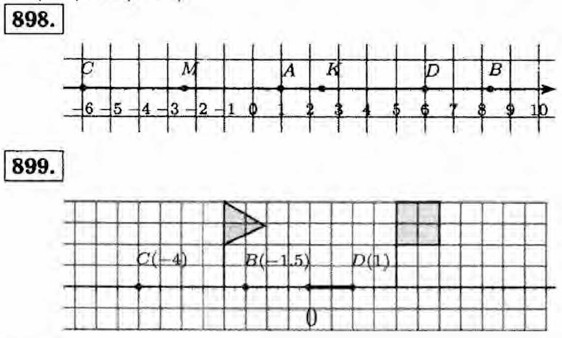 896. Точка P находится справа от точки О в 2 см. Точка С находится слева от точки О в 4 см. 897. O(0); А(-2); B(3); С(6); D(7); Р(-6); К(-7); М(-9); E(-12).