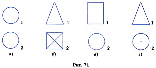 1009. На рисунке 71 под цифрой 1 показан вид фигуры спереди, а под цифрой 2 — вид сверху. Какая это может быть фигура?