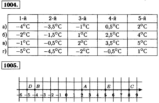 § 5. Положительные и отрицательные числа Изменение величин. Домашние работы1001. a) t = 28, повысилась на 28°С; t = -30, понизилась на 30°; t = -8, понизилась на 8°С; t = 4,5, повысилась на 4,5°; t = -1,7, понизилась на 1,7°С; б) х = -10, длина уменьшилась на 10 мм; х = 12, длина увеличилась на 12 мм; х = -9, длина уменьшилась на 9 мм; х = -4, длина уменьшилась на 4 мм. 1002. а) -б°С; б) 3,6°С; в) 60°С; г) -3,4°С. 1003. а) 6 мм; б) -5 мм; в) -23 мм; г) 18 мм.