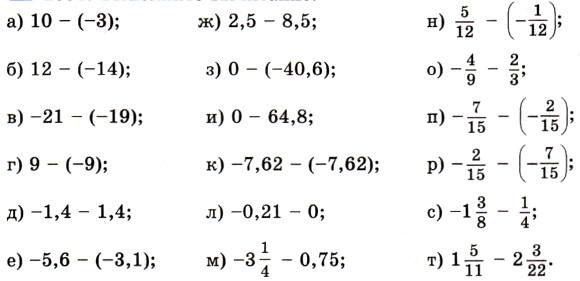 Что означает вычитание отрицательных чисел? Каким действием можно заменить вычитание числа а из числа b? Ответ запишите в виде соответствующего буквенного равенства. Как найти длину отрезка на координатной прямой? 1087. За день температура воздуха изменилась на -12 °С и к вечеру стала равна -8°С. Какой была температура утром? 1088. Температура воздуха утром была 5°С, а к вечеру она стала равной -2°С. На сколько градусов изменилась температура воздуха за день? 1089. Вчера термометр показывал х °С, сегодня температура понизилась на 12 °С. Какую температуру показывает термометр сегодня, если х = 25; 12; 6; 0? Решите задачу двумя способами: сложением и вычитанием. 1090. Проверьте равенство a - (-b) = a + b, если: