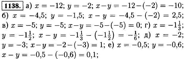 1135. а) 2 - 14 = -12; б) (-15) - (-3) = -12; в) (-2) - 10 = -12. 1136. а - b = b - а ⇒ 2а = 2b ⇒ а = b, например: 2 - 2 = 2 - 2, 5 - 5 = 5 - 5. 1137. a - b > a + b ⇒ 0 > b ⇒ b < 0, при любом а, например: -10 - (-5) = -5 > -15 = -10 - 5.