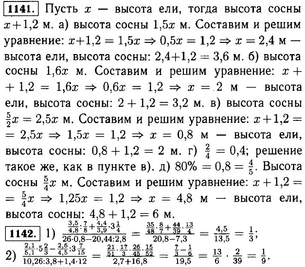 1146. Пусть х — количество сена привезённого во вторник, тогда в среду привезли 1,4x т сена. В среду привезли сена больше, чем во вторник, на 4,8 т. Составим и решим уравнение; 1,4x - х = 4,8 ⇒ 0,4х = 4,8 ⇒ х = 12. Таким образом, во вторник привезли 12 т сена, в среду привезли 12 + 4,8 = 16,8 т сена. За оба дня привезли: 12 + 16,8 = 28,8 т сена.
