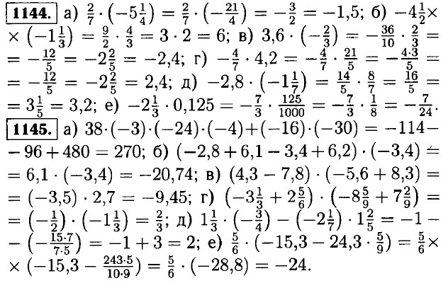 1143. а) -24 • 36 = -864; б) -48 • (-15) = 720; в) 33 • (-11) = -363; г) 1,6 • (-2,5) = -4; д) -4,3 • 5,1 = -21,93; е) -2,7 • (-6,4) = 17,28; ж) -1 • (-3,84) = 3,84; з) -7,2 • 0 = 0; и) -1 • (-1) = 1; к) (-3)2 = (-3) • (-3) = 9; л) (-2,5)2 = (-2,5) • (-2,5) = 6,25; м) (-0,2)3 = (-0,2) • (-0,2) • (-0,2) = -0,008.