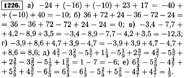 1225. 1) (0,7245 : 0,23 - 2,45) • 0,18 + 0,074 = (3,15 - 2,45) • 0,18 + 0,074 = 0,7 • 0,18 + 0,074 = 0,126 + + 0,074 = 0,2; 2) (0,8925 : 0,17 - 4,65) • 0,17 + 0,098 = (5,25 - 4,65) • 0,17 + 0,098 = 0,6 • 0,17 + 0,098 = 0,102 + 0,098 = 0,2; 3) (-2,8 + 3,7 - 4,8) • 1,5 : 0,9 = (-3,9) • 1,5 : 0,9 = (-5,85) : 0,9 = -6,5; 4) (5,7 - 6,6 - 1,9) • 2,1 : (-0,49) = (-2,8) • 2,1 : (-0,49) = (-5,88) : (-0,49) = 12.