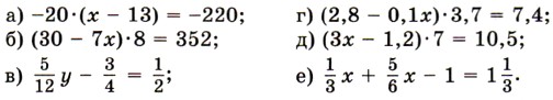 1340. Старинная задача. — Скажи мне, учитель, сколько учеников посещают твою школу и слушают твои беседы. — Вот сколько, — ответил учитель. — Половина изучает математику, четверть — природу, седьмая часть проводит время в размышлении, и, кроме того, есть ещё три женщины. 1341. Решите уравнение и выполните проверку: