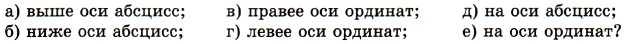 1427. Постройте столбчатую диаграмму по следующим данным: а) наибольшая глубина озера Байкал 1620 м, Онежского озера 127 м, озера Иссык-Куль 668 м, Ладожского озера 225 м; б) расстояние до Солнца от планеты Меркурий ≈ 58 млн км, от планеты Венера ≈ 108 млн км, от планеты Земля ≈ 150 млн км, от планеты Марс ≈ 228 млн км. 1428. Отметьте на координатной плоскости точки А(-2; 4), В (-4;-5), С(8; 0), D(-4; 4). Найдите координаты точки пересечения прямых АВ и CD. 1429. На координатной плоскости отмечены точки А(2; 3), В(-3; 4), С(-5; 6), D(3; -4), Е(0; -5), К(0; 3), N(-2; 0), М(5; 0). Какие из этих точек расположены: