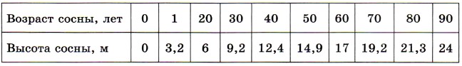 Постройте график зависимости высоты сосны от её возраста. Пользуясь графиком, найдите: а) высоту сосны в 15 лет; в 35 лет; в 75 лет;