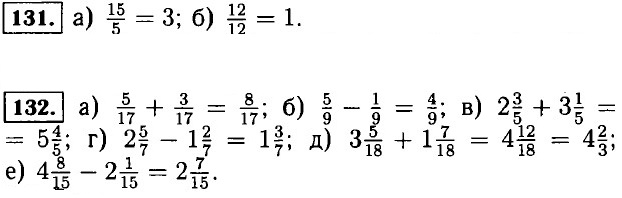 122. à) 25 = 5 • 5; 49 = 7 • 7; á) 27 = 3 • 3 • 3. 123. à) 22 = 2 • 11; 33 = 3 • 11; 55 = 5 • 11; 77 = 7 • 11; á) 26 = 2 • 13; 39 = 3 • 13; 65 = 5 • 13; 91 = 7 • 13; 69 = 3 • 23; â) 46 = 2 • 23; ã) 94 = 2 • 47. 124. à) à : b = (2 • 2 • 2 • 3 • 5 • 7) : (2 • 3 • 7) = 2 • 2 • 5 = 20; á) à : b = (3 • 3 • 5 • 5 • 11) : (3 • 3 • 5) = 5 • 11 = 55; â) à : b = (3 • 3 • 5 • 7 • 13) : (3 • 5 • 5 • 13) = (3 • 7) : 5 = 21 : 5, íå äåëèòñÿ; ã) à : b = (2 • 3 • 3 • 7 • 7) : (3 • 7) = 2 • 3 • 7 = 42; ä) à : 6 = (2 • 2 • 3 • 3 • 3 • 5 • 7) : (3 • 3 • 3 • 5) = 2 • 2 • 7 = 28; å) à : b = (2 • 2 • 2 • 3 • 3 • 5 • 5 • 5) : (2 • 2 • 2 • 5 • 5 • 5) = 3 • 3 = 9. 125. à) 6; 2,307; 4,7; 5; 12,9; á) 0,64; 0,52; 0,98; 0,15; 0,55; â) 0,016; 0,5; 0,012; 23; 400; ã) 3,1; 1,7; 47; 31 49,3. 126. Ïðè à = 1, 23à = 23 • 1 = 23. 127. Íå ñóùåñòâóåò, òàê êàê ïðè âû÷èñëåíèè ïåðèìåòðà ñóììà ñòîðîí óìíîæàåòñÿ íà äâà: Ð = 2 • (à + b). 128. ×èñëî 54 — 2, 3; ÷èñëî 62 — 2, 31; ÷èñëî 143 — 11, 13; ÷èñëî 182 — 2, 7; ÷èñëî 3333 — 3, 11; ÷èñëî 5005 — 5, 7. 129. 19, 23, 29, 31, 37, 41, 43. 130. Êîîðäèíàòû òî÷åê: À(ð - 1), Â(ð + 1), Ñ(2ð), D(3p). Åñëè ð ïðîñòîå ÷èñëî, òî îíî íå÷¸òíîå, òîãäà ÷èñëà ð - 1 è ð + 1 — ÷¸òíûå, ïîýòîìó ð - 1 è ð + 1 — ñîñòàâíûå ÷èñëà, çà èñêëþ÷åíèåì ð = 3 (3 - 1 = 2, 2 — ïðîñòîå ÷èñëî). 2ð è 3ð — ñîñòàâíûå ÷èñëà, òàê êàê ñîäåðæàò ìíîæèòåëè 2 è 3.