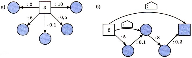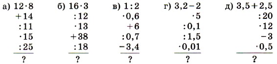348. Найдите значение выражения: а) 0,72 - 0,б2; б) З3 - 17,5; в) 0,52 • 8; г) 2,6 : 0,13. 349. Значение какого выражения можно вычислить на микрокалькуляторе по программе: