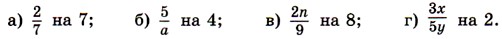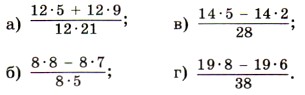 250. Один рабочий изготовил 16 одинаковых деталей за 6 ч, а другой — 24 такие же детали за 15 ч. Какой из них тратил на изготовление одной детали больше времени и на сколько? 251. Из 20 м ткани сшили 8 одинаковых платьев для взрослых, а из 12 м сшили 8 детских платьев. Сколько метров ткани пошло на одно детское платье и сколько — на одно платье для взрослых? 252. Применив распределительный закон, представьте числитель дроби в виде произведения, а затем сократите: