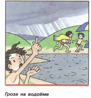 Глава 3. Опасные ситуации природного характера Погодные явления и безопасность человека (продолжение)Чем опасна гроза? Прежде всего молниевым разрядом. Прямое попадание молнии для человека может закончиться трагически. Ежегодно в мире от молний погибает около 3000 человек. Другая опасность — сильный ветер, который ломает ветки деревьев и может нанести повреждения зданиям. Сломанная ветка дерева, сорванный кусок кровли могут стать причиной травмы человека. Наконец, сильный ливень с градом, если от него вовремя не укрыться, также таит в себе серьёзную опасность для человека. Безопасное поведение во время грозы