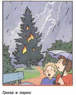 Второй важный показатель — это перепад атмосферного давления, которое оказывает влияние на движение воздуха. Воздух начинает движение (возникает ветер) в ту сторону, где атмосферное движение ниже. Ветер — это третий показатель погоды. Ветер характеризуется направлением (откуда дует) и скоростью перемещения воздуха. В зависимости от скорости перемещения воздуха различают: свежий ветерок — скорость ветра от 5 до 10 м/с (18 — 36 км/ч), шторм — скорость ветра 20 м/с (72 км/ч) и более, при скорости, превышающей 30 м/с (108 км/ч и более), начинается ураган. Другие характеристики погоды определяются наличием облачности и осадков (дождя, снега). Для предсказания погоды на Земле существуют наземные метеостанции. Во всём мире их около 20 тыс. С помощью метеостанций и других средств (воздушных шаров, радиозондов, космических средств) собираются данные о температуре воздуха, давлении, влажности, направлении и силе ветра. Эти данные обобщаются, и на их основе создаётся прогноз погоды, который вы слышите по радио и телевидению. Чтобы избежать неприятных последствий, в повседневной жизни необходимо руководствоваться прогнозами синоптиков. Если ожидается холодная погода, оденьтесь теплее, если дождливая — наденьте одежду, защищающую от дождя. ГрозаГроза — бурное ненастье с дождём, громом и молниями. Грозы связаны с развитием кучево-дождевых облаков, со скоплением в них большого количества электричества. Многократные электрические разряды, происходящие в облаках или между облаками и землёй, называются молниями. Гроза обязательно сопровождается раскатами грома и порывами ветра.