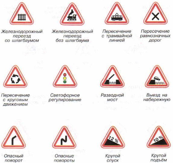 Приложение 1 Дорожные знакиПредупреждающие знакиДорожные знаки этой группы предупреждают о приближении к опасному участку дороги; имеют форму треугольника.