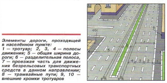 В соответствии с Правилами в нашей стране принято правостороннее движение, т, е. транспорт при движении придерживается правой стороны проезжей части дороги. Дорога — что мы понимаем под этим словом? Дорога — это обустроенная или приспособленная и используемая для движения транспортных средств полоса земли либо поверхность искусственного сооружения (моста). Дорога включает в себя одну или несколько проезжих частей, трамвайные пути, тротуары, обочины и разделительные полосы. Проезжая часть дороги предназначена для движения безрельсовых транспортных средств (легковых и грузовых автомобилей, автобусов, троллейбусов), трамвайные пути — для трамваев, тротуары — для пешеходов, обочина — для движения пешеходов и для остановки автомобилей. Разделительная полоса разделяет смежные проезжие части и не предназначена для движения или остановки транспортных средств и пешеходов. Разделительная полоса (как и тротуар) немного возвышается над проезжей частью дороги. На разделительной полосе может быть устроен газон или установлены ограждения.