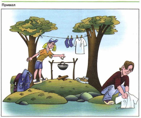 Глава 6. Первая помощь при неотложных состояниях Личная гигиена и оказание первой помощи в природных условиях (продолжение)Чтобы не натирать ноги в походе, важно следить за состоянием обуви. В походах желательно пользоваться шерстяными или хлопчатобумажными носками, которые следует стирать каждый день вечером. Сапоги и другую кожаную обувь следует по мере необходимости просушивать и смазывать. Нельзя сушить обувь у костра, так как она от этого твердеет, теряет гибкость и будет натирать ноги. Для просушки обуви на ночь её можно плотно набить сухим сеном, мхом или колосьями дикорастущих злаков. К утру она будет сухой. На дневных и больших привалах желательно систематически стирать бельё, очищать от пыли и грязи верхнюю одежду. В походе следует регулярно чистить зубы. Если вы забыли взять с собой зубную пасту, целесообразно попросить её у товарища. Если и у товарища закончился запас зубной пасты, то чистить зубы можно мылом; если не взяли зубную щётку, то чистить можно и пальцем, предварительно тщательно вымыв руки. Не забывайте после каждого приёма пищи полоскать рот водой.