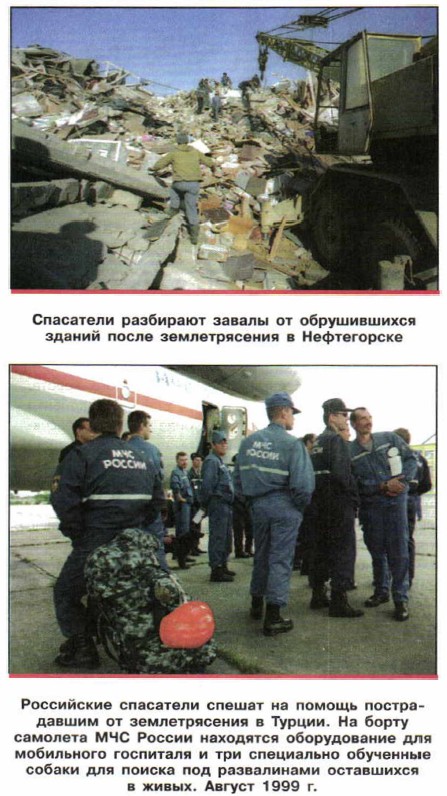 1. В дневник безопасности запишите районы на территории России, где вероятность землетрясений велика. 2. С помощью Интернета и библиотеки найдите примеры крупных землетрясений начала XXI в. Поместите их описание в дневник безопасности в виде таблицы: в левой колонке место и время землетрясения, количество баллов по шкале Меркалли, в правой — ущерб для населения и экологии.