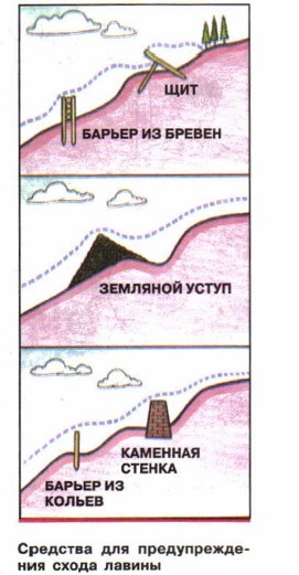 Большое значение для защиты населения от последствий снежных лавин имеет их прогнозирование. Для этого действует специальная система наблюдения. Данные, полученные от системы наблюдения, обрабатываются и представляются в виде прогнозов. На основании полученных прогнозов планируются и осуществляются профилактические мероприятия. В условиях угрозы схода снежных лавин организуют контроль за накоплением снега на лавиноопасных направлениях, вызывают искусственный сход формирующихся лавин в период их наименьшей опасности. Строятся защитные сооружения на лавиноопасных направлениях, подготавливаются спасательные средства и планируются спасательные работы. Проводится оповещение населения об опасности схода лавин.