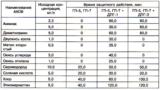 Защитные свойства фильтрующих гражданских противогазов от АХОВ