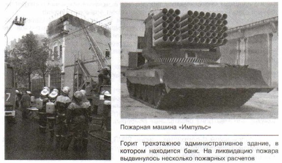 Спасатели МЧС проходят специальную подготовку. В штаты боевых расчетов вводятся автомобили первой помощи и установки импульсного пожаротушения. На базе танка Т-64 создана машина «Импульс», которая тушит пожар в десять раз эффективнее обычных. Эта машина предназначена для тушения крупных пожаров на нефтехранилищах, местах добычи нефти, различных промышленных и гражданских объектах с помощью установки залпового огня капсулами с огнетушащим порошком.