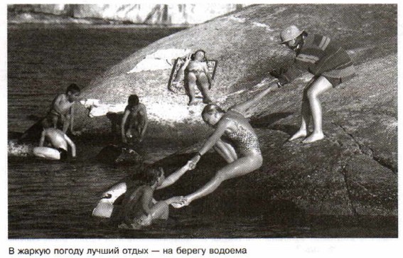 С давних пор человек использовал воду рек и озер в своем хозяйстве и быту. Эта вода в процессе ее промышленного использования загрязняется различными химическими веществами, становится непригодной для использования человеком и сбрасывается в реки и озера, загрязняя их. Поэтому в черте города и вблизи него вниз по течению вода в реках не пригодна для питья, а в некоторых местах опасна даже для купания. Летом в жаркую погоду лучший отдых — на берегу реки, озера или водохранилища, но надо помнить, что не во всех местах можно купаться. Если на берегу установлен знак «Купаться запрещено», не следует нарушать этого запрета, как бы ни было велико желание искупаться.