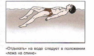 При купании надо стараться не заплывать далеко, так как можно не рассчитать своих сил. Почувствовав усталость, не надо теряться и стремиться как можно скорее доплыть до берега. Надо уметь «отдыхать» на воде. Лучшим отдыхом будет положение «лежа на спине», при котором, действуя легкими надавливающими на воду движениями ладоней рук и работой ног, можно поддерживать себя на поверхности воды, чтобы восполнить силы для продолжения плавания. Бывает так, что вода попадает в дыхательное горло и мешает дышать. Чтобы избавиться от нее, нужно немедленно остановиться, поднять голову возможно выше над водой и сильно откашляться. Если при этом, стоя в воде, энергично работать руками и ногами (давить на воду сверху вниз), то можно еще выше поднять голову, что поможет лучше откашляться. Если вас захватило течением и понесло в незнакомое место, нельзя поддаваться панике. Сохраняя хладнокровие, не надо плыть против течения, иначе можно выбиться из сил. Лучше плыть по течению вниз, постепенно под небольшим углом приближаясь к берегу.