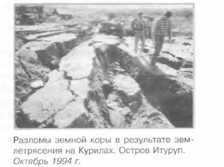 Природные явления геологического характера порождают землетрясения. Только за десять лет (1994—2004 гг.) на территории Российской Федерации их произошло более 120, причем два были сильнейшими, вызвали чрезвычайные ситуации 4 октября 1994 г. на Курилах и 27 мая 1995 г. в поселке Нефтегорск (Сахалин). Оба землетрясения привели к человеческим жертвам, сильным разрушениям объектов социальной и промышленной инфраструктуры.