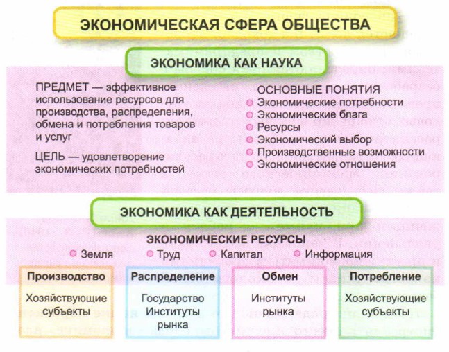 Глава 1. Экономика § 1. Что изучает экономикаСегодня Экономикс преобразился — он социологизировался: в нём освещается политика доходов, проводимая государством и предпринимателями; определяются пути борьбы с безработицей и бедностью населения; проводится сравнительный анализ трудовых отношений в разных культурах; рассматриваются проблемы развивающихся стран, антикризисного регулирования, экономического роста, а также злободневные вопросы расовой дискриминации и ограничения прав женщин при найме на работу и увольнении. В наши дни особо модно и престижно заниматься проблемами качества жизни и экологической безопасности. По мнению ряда учёных, в русском языке корректнее употреблять вместо английского слова «экономике» адекватные ему русские слова «экономика», «экономическая теория». Надо отметить, что экономике нередко употребляют в качестве синонима прикладной экономики. Экономика занимается многими вопросами, в том числе и такими: как лучше распорядиться дефицитными ресурсами (земля, труд, оборудование, технические знания) для производства товаров и оказания услуг, необходимых различным группам потребителей. Вот почему её можно ещё определить как учение о том, каким образом максимум потребностей можно удовлетворить при минимуме средств. Экономике как системе ведения рационального хозяйства столько же лет, сколько и самому обществу, — 40 тыс. А понятие «ойкономос» появилось у греков примерно за тысячу лет до новой эры. С тех пор экономика превратилась в мощную систему научных знаний и разветвлённую совокупность отраслей, составляющих особую сферу общества — экономическую. Как отрасль знания, она представляет собой систему наук, образующих составную часть общественных наук.