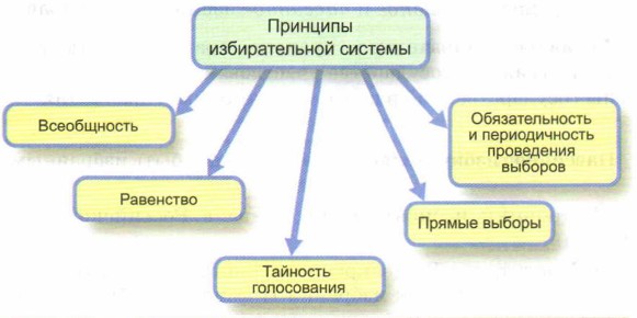 Источники избирательного права в Российской Федерации: • Конституция РФ (закрепляет принципы избирательной системы, порядок избрания Президента РФ, депутатов Государственной Думы; • Федеральный закон «Об основных гарантиях избирательных прав и прав на участие в референдуме граждан Российской Федерации», Федеральный закон «О выборах Президента Российской Федерации»; •Федеральный закон «О выборах депутатов Государственной Думы Федерального Собрания Российской Федерации»; • Федеральный закон «Об обеспечении конституционных прав граждан Российской Федерации избирать и быть избранным в органы местного самоуправления»; • Федеральный конституционный закон «О референдуме»; • Указы Президента РФ (по вопросам организации и проведения выборов); • Нормативные акты Центральной избирательной комиссии Российской Федерации; • Конституции республик, уставы краёв, акты глав администраций избирательных комиссий и др. К настоящему времени выработаны обязательные требования к порядку организации и проведения выборов, которые и образуют принципы российской избирательной системы. В нашей стране выборы являются всеобщими. Это значит, что все взрослые граждане имеют право принимать в них участие.