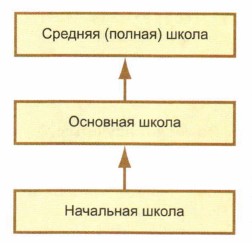 Сегодня ты ученик основной школы. С 5 класса в расписании твоих уроков появились новые предметы: история, естествознание, обществознание и др., изучение которых поможет тебе узнать много полезного и интересного. Чтобы применять знания при решении различных задач, которые встречаются тебе не только в школе, но и в повседневной жизни, нужны ещё и умения. Например, очень важно уметь быстро читать, грамотно писать, составлять план рассказа или алгоритм1 решения математической задачи. Повседневные занятия позволят тебе перевести умение в навык. Например, ты уже не думаешь, как писать буквы, рука как бы сама их пишет. Не шепчешь ты и текст, который читаешь, — глаза легко и быстро пробегают по строчкам. Это значит, что у тебя выработан навык письма и чтения, т. е. твои действия автоматизировались, стали привычкой. 1 Алгоритм — строгая последовательность действий по решению какой-нибудь задачи (научной, учебной или практической). Общее образование включает в себя три ступени: начальное общее, основное общее, среднее (полное) общее.