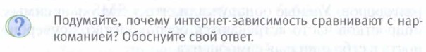 Глава 2. Ближайшее окружение подростка Общение. ОбществознаниеСовременный ребёнок вырастает не только с мобильником или компьютером, но и с Интернетом. Для него привычны компьютерные игры, icq, такие социальные сети, как «В контакте» (в последнее время там наблюдается большое количество детей младшего подросткового возраста). Паутина Интернета раскинулась по всей поверхности Земли — от Америки до Австралии, не исключая даже Антарктиду. Вместе с ней пришла новая напасть — интернет-зависимость.