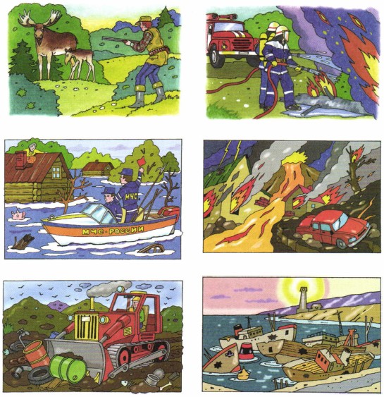 Рассмотри рисунки. Что означает право граждан на защиту среды, в которой они живут? Приведи примеры неразумной хозяйственной деятельности, ухудшающей окружающую среду; катастрофических природных явлений (землетрясений, наводнений и т. п.); аварий машин и механизмов, разрушительно воздействующих на природу.