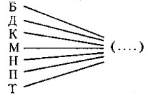 43. Вставьте слово, которое означало бы то же, что и слова, стоящие вне скобок: КОСТОЧКА ПАЛЬЦА (....) ПАУКООБРАЗНОЕ 44. Вставьте слово, которое служило бы окончанием первого слова и началом второго: ГА (...) РЕЛЬ 45. Найдите общее окончание для всех последующих слов: