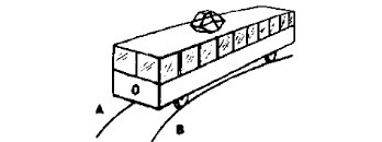 57. Какой из двух рельсов должен быть выше на повороте. 1. Рельс А. 2. Рельс В. 3. Оба рельса должны быть одинаковыми по высоте.